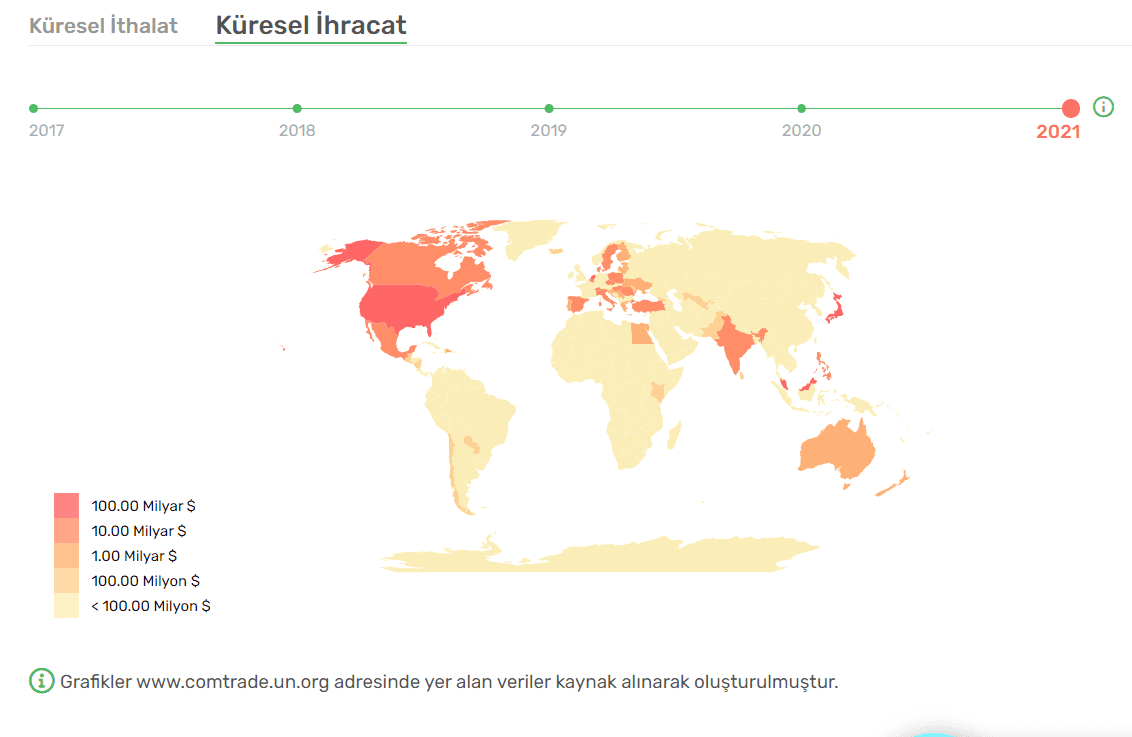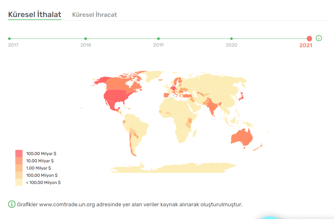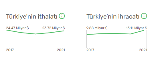 The export data in recent years in our country has shown that very good figures have been obtained month by month. The export and import figures for Turkey between the years 2017 and 2021;